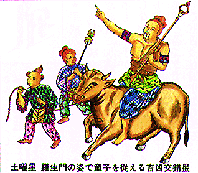 ●平成10年度の全般的運勢 土曜星は黒星の翌年にあたり、運気の改善上昇が激しい年となります。 土曜星のお姿は、婆羅門(ばらもん)が童子を従えて移動する相を表し、 物事が変動する時は、特に慎重に堅実に対処して吉年となります。 段階を経て自ら実力の地固めをすれば高い目標も達成できる一年。 急反応や怒りは凶。 ●土曜星の相性運 相手に礼節尽して、末永い良い人間関係が維持できます。 人からの信頼に、全力で善意に応えると飛躍する吉年です。 ●仕事運・家庭運 仕事は、経験を積み、しかも新しい事を学ぶ向上心が大切。 責任あることには全力で取り組むべし。活路を開く年になります。 家庭では、お互いにいたわりの言葉を増やし、日常の会話を増して 家運隆盛の年。 ●勉強・学習運 偏ることなく、必要な全科目の勉強をまんべんなくすること。 毎日の勉強の習慣を保つ。暗記は確実に正しく覚えると大吉。 ●金運・商売運 安易に売買せずに、調査して情報を集め熟慮してからが吉。 商売は、品ぞろえと丁寧な商品説明で顧客の信頼も上昇する。 ●愛情運 未婚者は、日常の爽やかな言葉と清潔な行動に出会いも導かれる。 既婚者は、相手の仕事や家事などの苦労を考えて、感謝の心を 表わすようにすると吉年。 縁談は、春と秋冬に吉、礼儀正しく率直な言葉が吉。 ●健康運 刺激の強い食品や熱すぎる物は避け、腹八分目にすること。 適度に身体を動かすことが大切。耳と鼻の病に注意。 ●吉方向・旅行運 東と西が吉方向。短期の旅で楽しむ。 旅先での安全性の確保と、置き引きや忘れ物に注意。 ●建築・増改築 室内の危険には、早めに対処しておくと吉。 屋外は老朽化の補修を忘れずに。